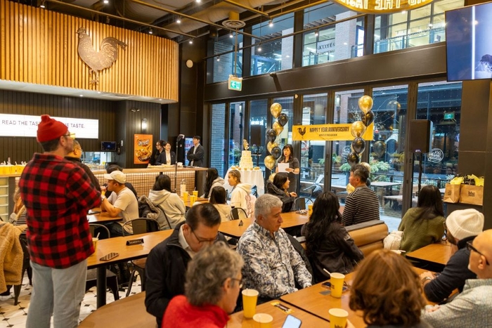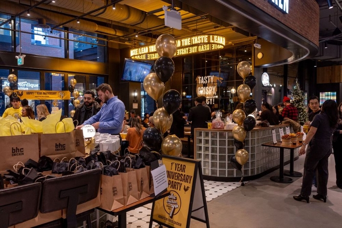 [스포츠서울 | 조선경 기자] 다이닝브랜즈그룹의 치킨 브랜드 bhc가 캐나다 1호점 오픈 1주년을 맞아 지난 11일(현지시간) 토론토 중심부의 복합 쇼핑몰 ‘더 웰(The Well)’에 위치한 1호점 매장에서 기념행사를 열고, 북미 시장에서의 본격적인 가맹사업 확대 계획을 밝혔다.