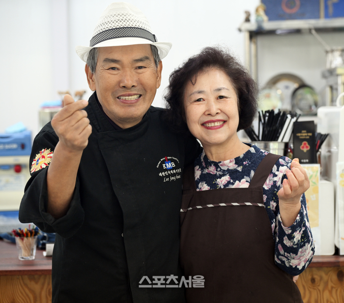 유자제빵소는 이종화 셰프와 부인이 함께 운영한다. 사진 속 두 사람은 주방에서 활짝 웃으며 서로를 격려하는 모습이다.