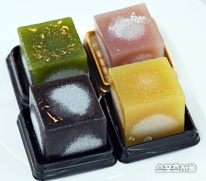 전통 디저트도 빠질 수 없다. 네 가지 색상의 양갱 세트는 녹차, 딸기, 초콜릿, 유자 맛으로 구성됐다. 각각 금분과 코코넛 가루로 장식한 양갱은 시각적으로도 아름답지만, 쫀득하면서도 부드러운 식감과 은은한 단맛이 조화를 이뤄 남녀노소 누구나 즐기기 좋다. “전통 한과의 멋을 현대적으로 재해석했어요. 달콤하지만 과하지 않은 맛이 특징입니다”라고 이씨는 자신한다.
