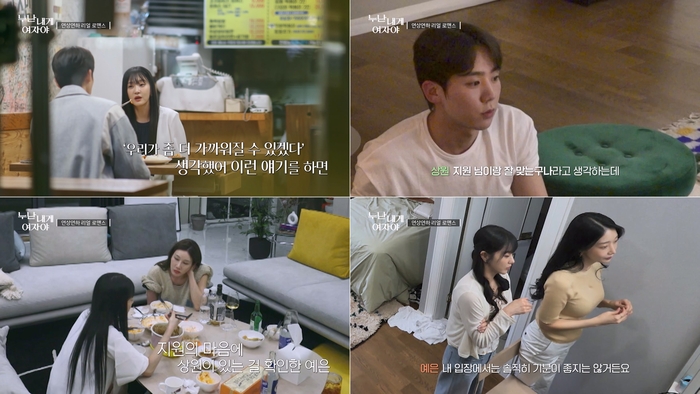 이후 예은은 앞서 양지융에게 호감을 보였던 지원을 향해 “마음에 지융 씨는 없는 거죠?”라고 돌직구로 질문했다. 이에 지원이 “상원 씨를 더 알아보고 싶다”라고 정확하게 밝히자, 둘 사이에 차가운 공기가 맴돌았다.