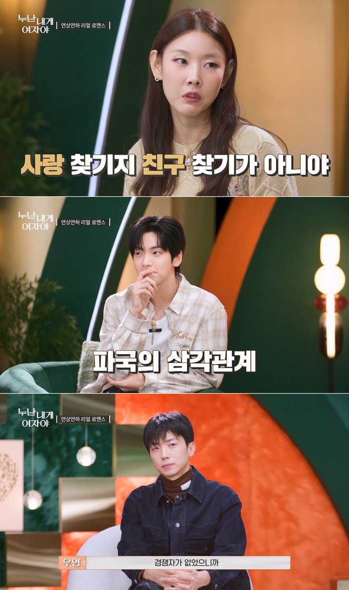한편, 22일 방송 예고편에서는 랜덤 그룹데이트 ‘영상, 영하 데이트’하는 누나와 연하남들의 모습이 그려졌다. 예은과 지원은 같이 ‘영상’ 팀을 뽑았지만, 상원은 ‘영하’ 팀으로 가게 되면서 이들의 데이트 기회가 엇갈렸다.