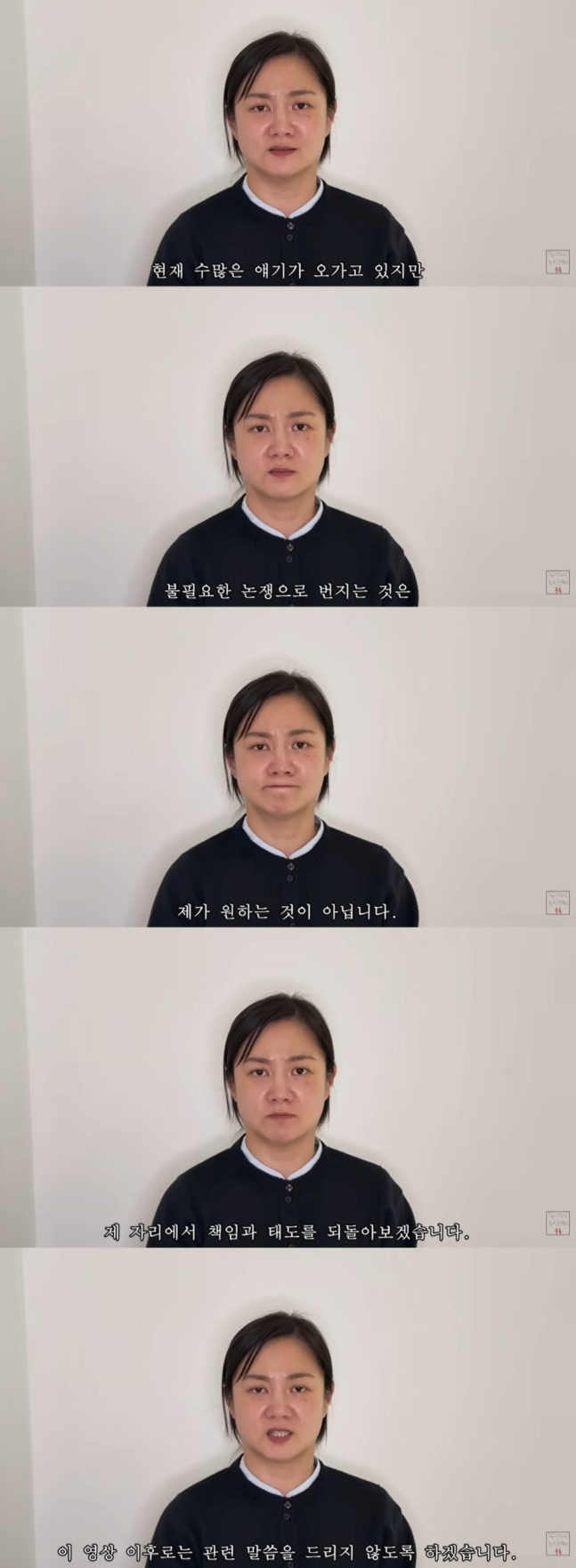 그는 “당분간 모든 활동을 멈추고 이 사안을 정리하는 데 집중하겠다”며 “내 자리에서 책임과 태도를 되돌아보겠다”고 밝혔다.