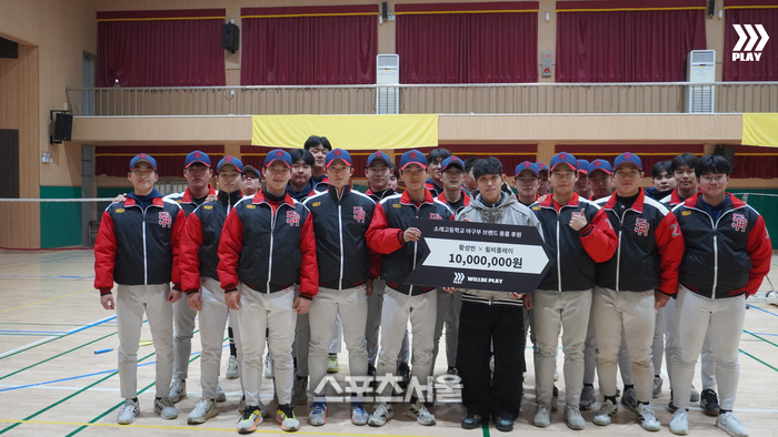 황성빈은 지난 11일 소래고등학교를 방문해 형지 엘리트의 스포츠 브랜드인 윌비플레이와 1000만원 상당의 야구용품을 전달했다.