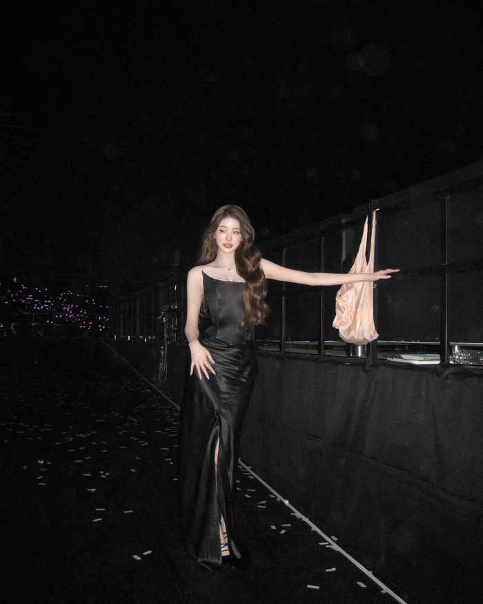 장원영은 매끈한 어깨 라인과 쇄골을 드러낸 채 다양한 포즈를 취하며 한층 성숙해진 매력을 뽐냈다. 굵은 웨이브 헤어스타일과 실키한 드레스의 조화는 클래식하면서도 치명적인 분위기를 배가시켰다. 특히 어두운 백스테이지를 배경으로 서 있는 모습에서는 주변을 압도하는 독보적인 존재감이 느껴진다.