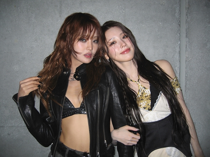 또한 민니는 멤버 미연과 함께 찍은 사진도 공개했다. 두 사람은 얼굴을 맞대고 다정한 포즈를 취하며 비주얼 합을 뽐냈는데, 강렬한 카리스마의 민니와 청순한 미모의 미연이 대비를 이루며 팬들의 뜨거운 반응을 이끌어냈다.
