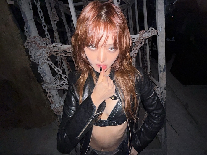 공개된 사진 속 민니는 검은색 가죽 재킷 안에 란제리를 연상시키는 브라톱만을 매치한 과감한 패션으로 시선을 강탈했다. 그는 재킷을 살짝 걸치거나 한쪽 팔을 들어 올리는 포즈를 통해 매끈한 허리 라인과 탄탄한 복근을 가감 없이 드러냈다. 특히 갈비뼈가 보일 정도로 마른 ‘슬렌더’ 체형임에도 선명하게 드러난 복근이 감탄을 자아낸다.