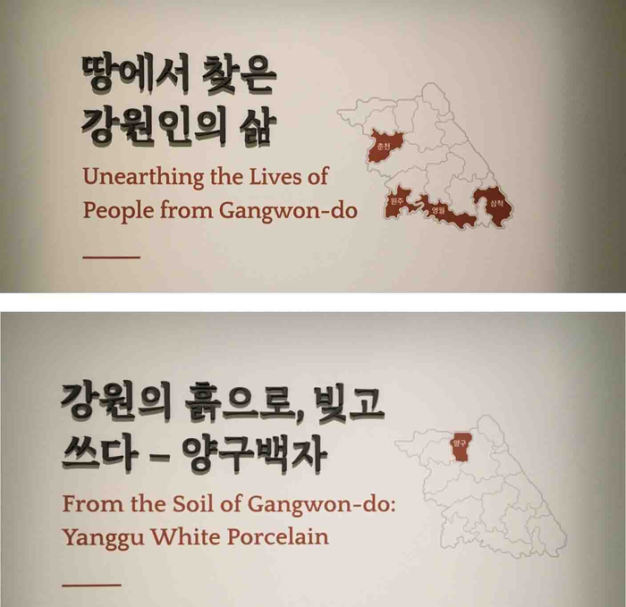 ‘강원의 흙으로 빚고 쓰다-양구백자’에서 조선 왕실 백자의 원료였던 양구백토로 빚은 근대 양구백자를 조명한다. 2008년 국립춘천박물관이 발굴한 양구 칠전리 가마터에서 나온 백자 조각들을 선별 공개해, 19세기 말~20세기 초 조선 백자 전통을 계승하면서도 지역 수요에 맞게 장식 기법을 새롭게 고안해 제작한 양구백자의 양상에 주목한다.