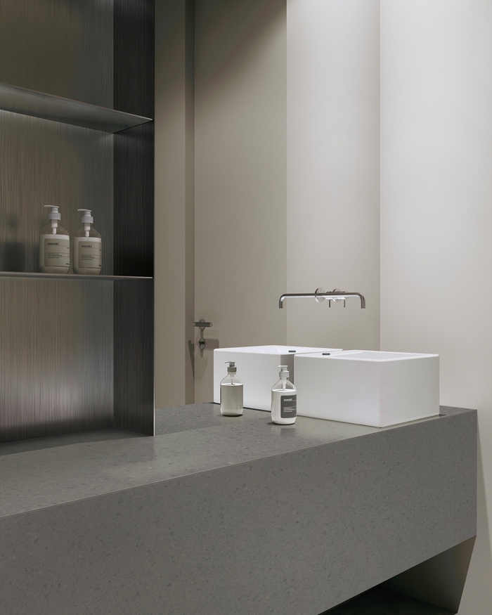 천연석과 비교해 표면 긁힘과 파손에 강하며 수분 흡수율이 매우 낮아 얼룩이 쉽게 생기지 않고 세균 번식 억제에도 뛰어나 위생 관리가 중요한 주방, 욕실, 현관 등에 적용하기에 적합하다. 또한 천연석에서 발생할 수 있는 색상 불균형 현상을 최소화한 점도 강점이다.
