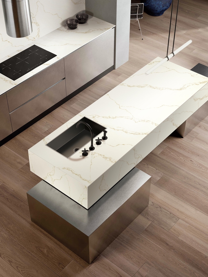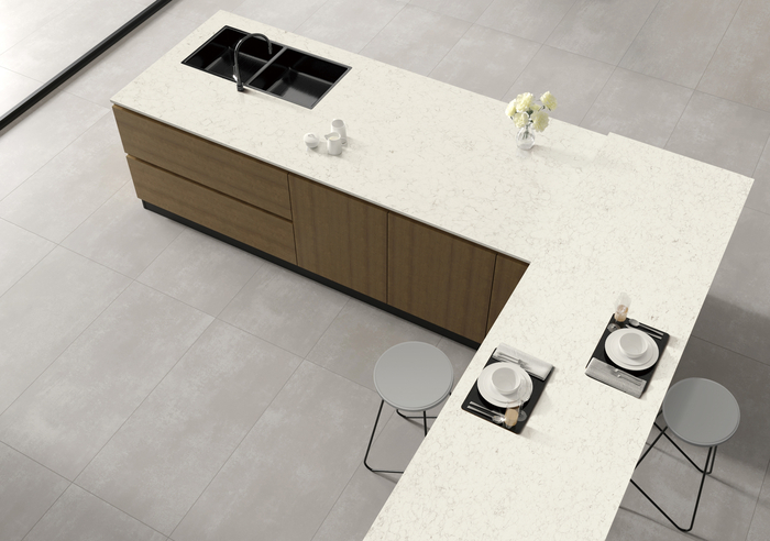 또한 패턴이 끊이지 않고 자연스러운 대형 마감재를 선호하는 인테리어 고급화 트렌드에 맞춰 센스톤 쿼츠는 가로 1600㎜, 세로 3200㎜, 두께 20㎜의 대형 규격으로 출시됐다. 이를 통해 주방 상판은 물론 상판과 측면이 하나로 이어지는 일체감 있는 시공도 가능해 웅장하고 고급스러운 아일랜드형 주방 연출이 가능하다.