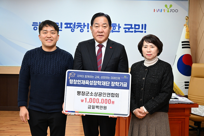[스포츠서울ㅣ김기원기자]평창군소상공인연합회(회장 전제욱)와 전제욱 회장이 17일 평창군청을 방문하여 평창인재육성장학재단에 각각 50만 원씩, 총 100만 원을 기탁했다.