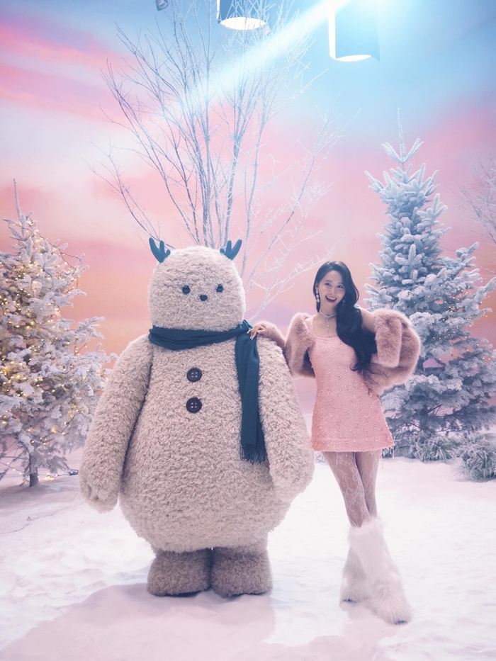 특히 거대한 눈사람 인형 어깨에 손을 올리고 환하게 웃거나, 눈 뭉치 소품을 활용해 장난기 넘치는 표정을 짓는 모습은 보는 이들을 미소 짓게 만든다. 화려한 액세서리와 몽환적인 조명은 임윤아의 화사한 미모를 더욱 돋보이게 했다.
