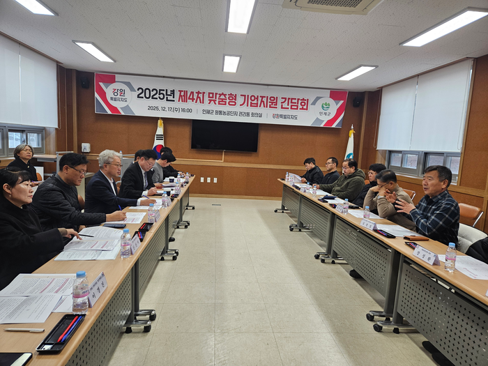 [스포츠서울ㅣ김기원기자]인제군은 지난 17일 원통농공단지 관리동 회의실에서 ‘2025년 맞춤형 기업지원 간담회’를 개최했다.