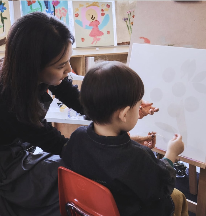 공개된 사진에는 미술 수업을 듣는 윤승아·김무열 부부의 아들 원 군의 모습이 담겼다. 윤승아와 나란히 앉아 그림을 그리고 있는 원 군은 한층 자란 모습으로 시선을 사로잡았다. 아직 어린 나이임에도 과감한 붓 터치와 화려한 색감 선택이 돋보여 보는 이들을 미소 짓게 했다.