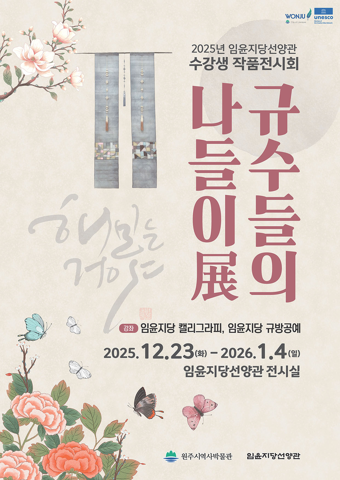 [스포츠서울ㅣ원주=김기원기자]원주시 임윤지당선양관은 오는 23일부터 내년 1월 4일까지 선양관 전시실에서 수강생 작품전시회 ‘규수들의 나들이展(전)’을 개최한다.
