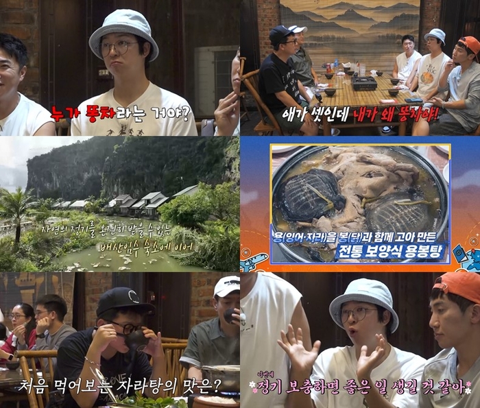이날 멤버들은 장동민의 강력 추천으로 닌빈의 보양식 맛집을 찾는다. 장동민은 “남자들의 정기에 최고라는 염소 고기와 ‘용봉탕’(자라탕)을 먹을 것”이라며, “특히 2세를 계획 중인 준호 형에게 안성맞춤인 저지방 고단백 식품”이라고 메뉴 선정 이유를 밝힌다.
