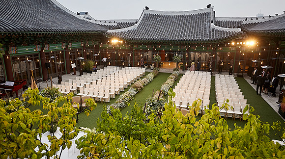 대한민국 호텔의 자존심 ‘서울신라호텔’, 그중에서도 한옥의 미를 품은 ‘영빈관’은 스타들에게 단순한 예식장 그 이상의 의미를 갖는다. 외부의 시선을 완벽히 차단하는 은밀함, 붉은 기와지붕 아래 펼쳐진 고풍스러운 야외 웨딩은 그 자체로 부와 명예의 상징이자 ‘세기의 결혼식’을 완성하는 마침표가 되었다.