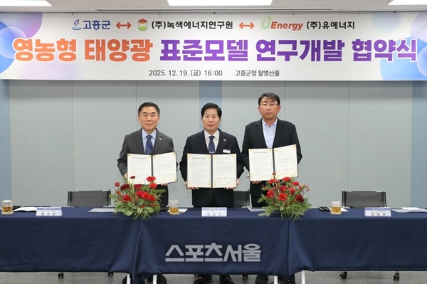 협약에 따라 ▲고흥군은 실증단지 부지 제공과 배전선로 설치 등 행정 지원을 총괄하고 ▲주관기관인 ㈜유에너지는 설비 설계 및 시공과 기술관리를 담당하며 ▲(재)녹색에너지연구원은 작물 생육환경 검토와 데이터 검증 등 기술 자문을 수행하게 된다.