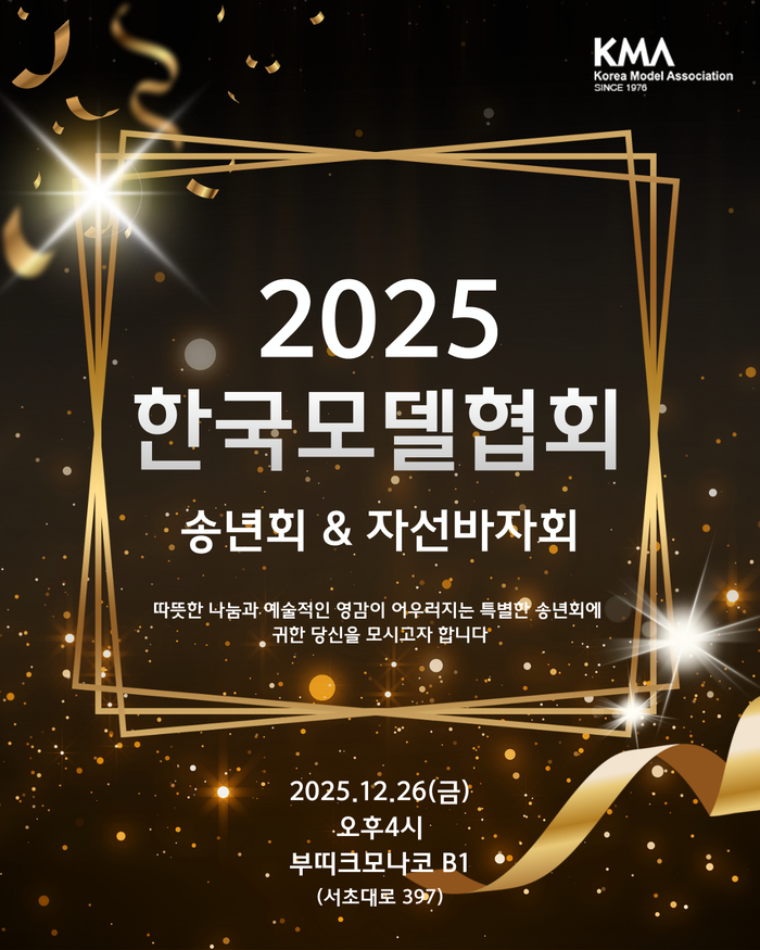 한국모델협회(회장 임주완)는 12월 26일 오후 4시 서울 서초구 부띠크모나코에서 ‘2025 송년의 밤 & 자선 바자회’를 연다고 밝혔다.