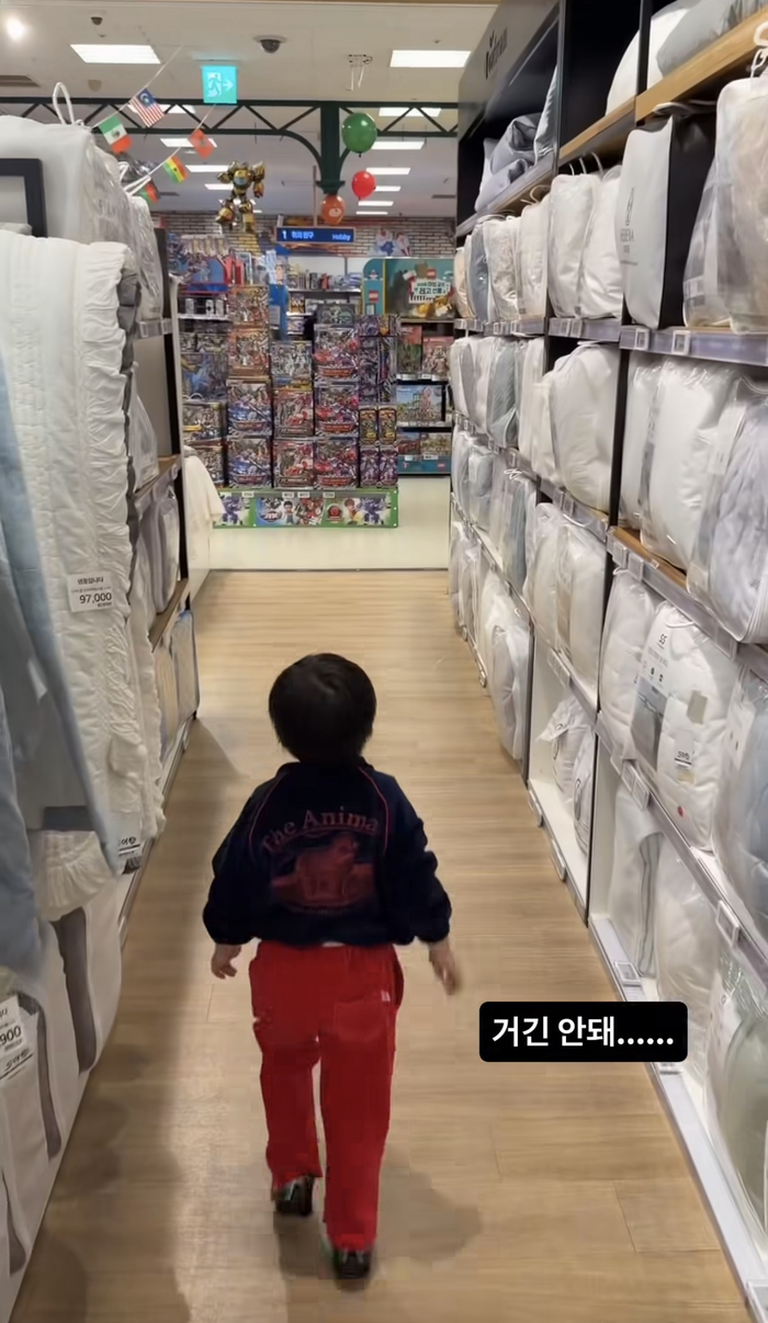 21일 제이쓴은 자신의 SNS에 “거긴 안돼”라는 짧은 글과 함께 영상을 게재했다. 공개된 영상 속 준범이는 마트에 들어서자마자 장난감 코너를 향해 전력 질주하는 모습으로 웃음을 자아냈다. 마치 ‘직진 본능’이 발동한 듯, 장난감이 가득한 공간으로 홀린 듯 돌진해 시선을 끌었다.