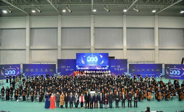 [스포츠서울ㅣ김기원기자]강원특별자치도횡성교육지원청(교육장 심영택)은 12월 20일(토) 횡성국민체육센터에서 열린 ‘2025 제3회 횡성교향악 대축제 300인의 클래식’에서 횡성 지역의 학생들과 주민 300여 명이 만들어낸 웅장한 하모니로 감동적인 무대를 선사했다고 밝혔다.