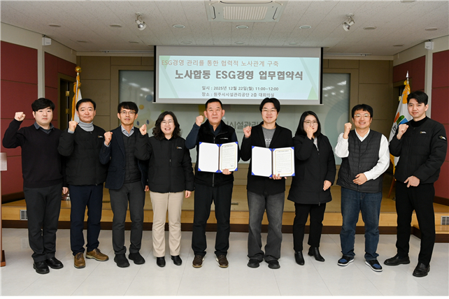 [스포츠서울ㅣ원주=김기원기자]원주시시설관리공단(이사장 조남현)은 공단 2층 대회의실에서 노사합동 ESG경영 업무협약식을 22일 추진했다고 밝혔다.