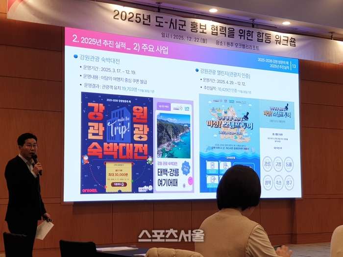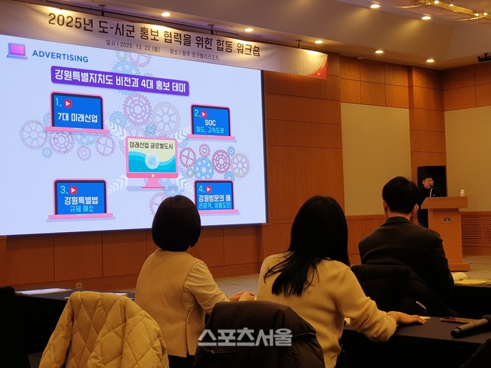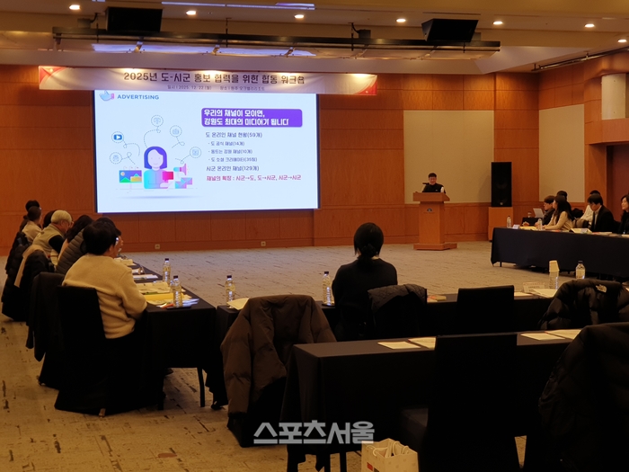 [스포츠서울ㅣ원주=김기원기자]강원특별자치도가 도내 지자체 홍보 부서 간 소통과 협력을 강화하기 위해 12월 22일부터 23일까지 1박 2일간 원주 오크밸리 리조트 빌리지센터 3층에서 ‘2025년 도·시군 홍보 협력을 위한 합동 워크숍’을 개최한다.
