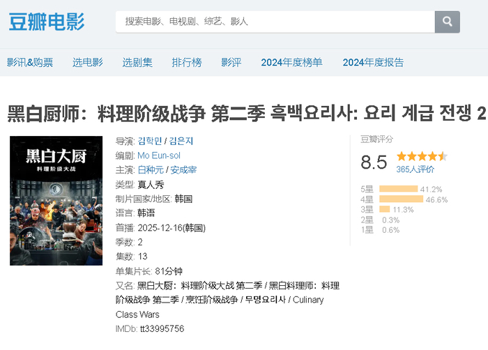 이 같은 장면은 시즌1 당시에도 반복됐다. ‘흑백요리사’ 시즌1 역시 더우반에 리뷰 페이지가 만들어졌고, 당시 리뷰 수는 약 9500건, 별점 평가는 2만3000여 명이 참여해 논란이 확산된 바 있다.