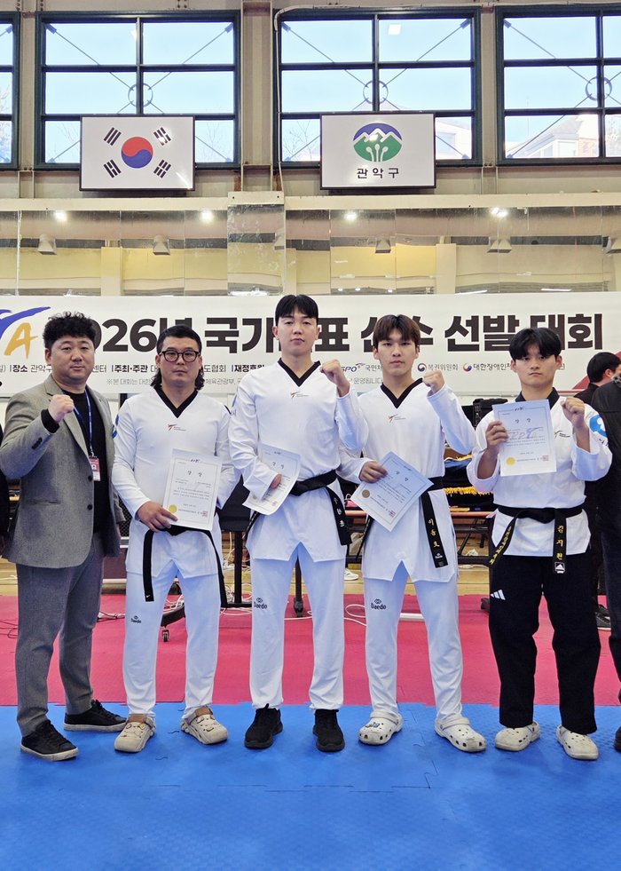 [스포츠서울ㅣ춘천=김기원기자]춘천시장애인체육회(회장 육동한) 장애인태권도 직장운동경기부가 ‘2026년도 장애인 태권도 국가대표 선수(청각·지체) 선발대회’서 겨루기 종목 출전 선수 3명 전원이 국가대표로 선발되는 성과를 내며 존재감을 드러냈다.
