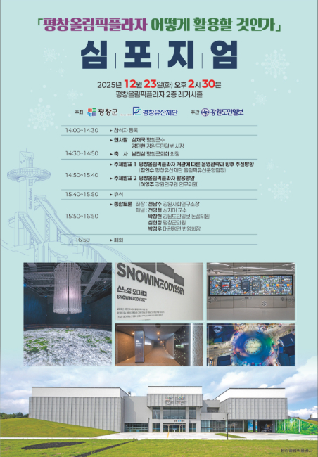 최찬섭 평창유산재단 사무처장은 “평창올림픽플라자는 올림픽 이후 지역의 새로운 성장 거점으로 자리매김해야 할 중요한 자산”이라며 “이번 심포지엄이 실효성 있는 활용 방안을 도출하고 지역사회와 함께하는 공감의 장이 되길 기대한다”라고 밝혔다.