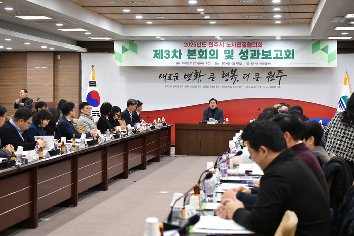 [스포츠서울ㅣ원주=김기원기자]원주시 노사민정협의회는 23일 오후 5시 시청 10층 대회의실에서 제3차 본회의 및 성과보고회를 개최했다.