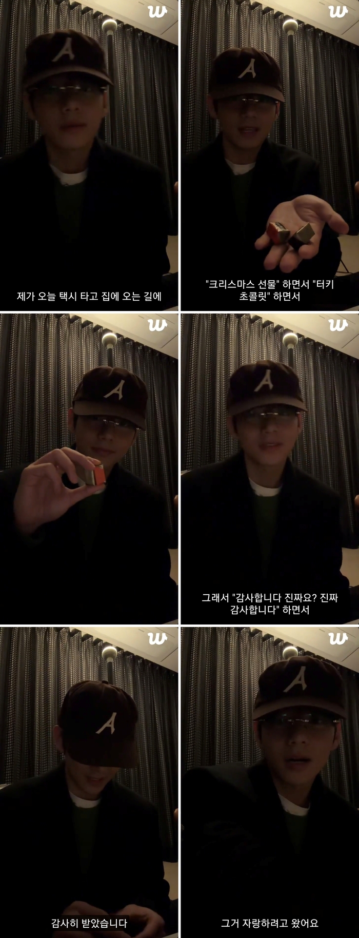 [스포츠서울 | 배우근 기자] 방탄소년단 뷔가 택시기사에게 받은 크리스마스 선물을 팬들과 공유하며 훈훈한 화제를 만들었다.