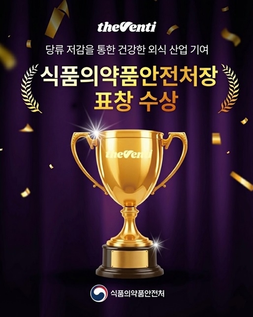 [스포츠서울 | 조선경 기자] 커피 프랜차이즈 더벤티가 식품의약품안전처에서 주관하는 25년 건강위해가능 영양성분 저감 유공 식품의약품안전처장 표창을 수상했다고 밝혔다.