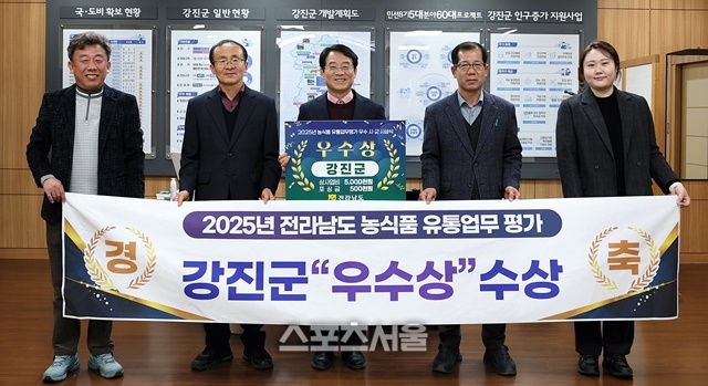 [스포츠서울┃조광태 기자] 전남 강진군이 최근 전라남도 주관 ‘2025년 농식품 유통업무 평가’에서 우수상을 수상하며 농식품 유통정책의 선도 지자체로 주목받았다.