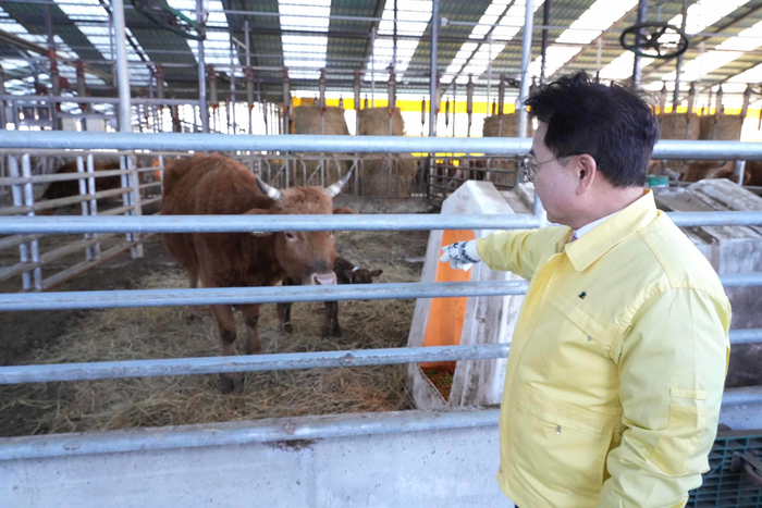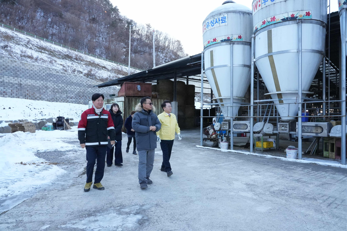 [스포츠서울ㅣ춘천=김기원기자]육동한 춘천시장은 26일 춘천지역에 한파주의보가 내려진 가운데 사북면의 한 한우농가를 방문해 동절기 대비 가축 사육환경 등 시설 점검을 했다.