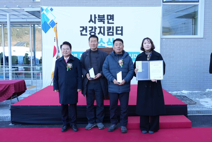 [스포츠서울ㅣ춘천=김기원기자]춘천시 사북면 건강지킴터 개소식이 26일 사북면 신포리 413-3번지(행정복지센터 뒤편)에서 열렸다. 사북면 건강지킴터는 총 사업비 16억 5,000만원이 투입돼 만들어진 지상 2층 규모의 건물로 찜질방과 체력단련실 등이 들어선다. 이날 개소식에는 육동한 춘천시장을 비롯해 사북면 자생단체, 주민 등 150여명이 참석한 가운데 건강지킴터 건립 유공자들에 대한 시상식이 진행됐다.