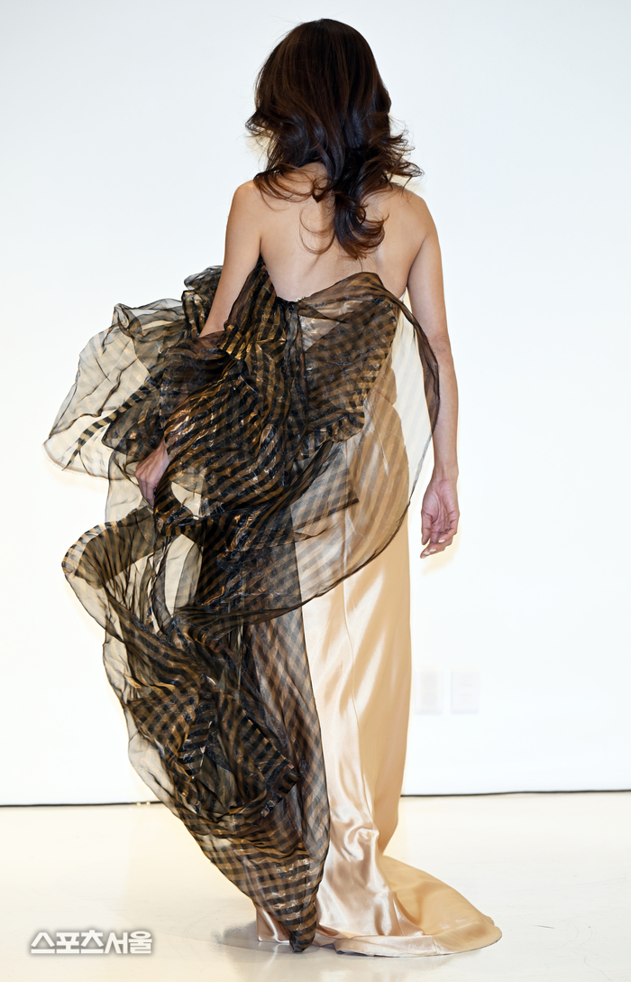 이날 열린 패션쇼에서 가장 눈길을 끈 사람은 48세 김수인이다. 김수인은 눈부신 미모와 비율을 앞세워 화려한 워킹으로 관객을 시선을 사로잡았다.