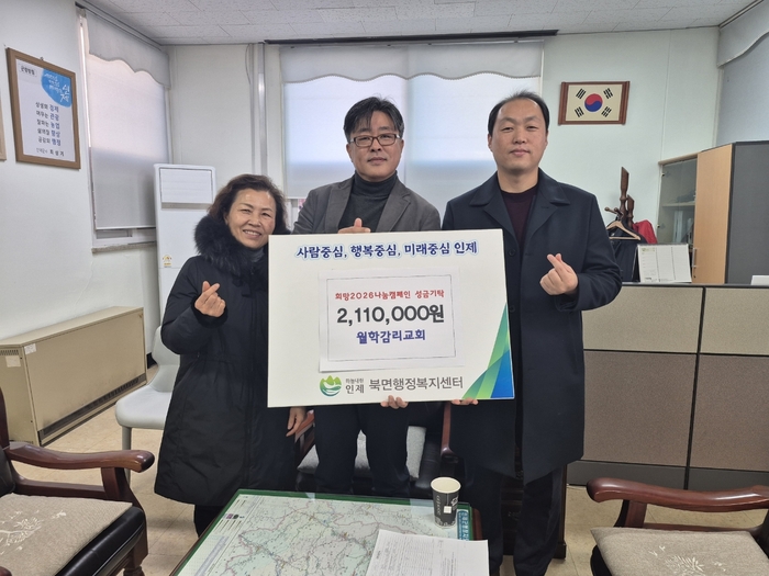 [스포츠서울ㅣ김기원기자]빛나라어린이집·인제산업(주)·북면 월학감리교회는 인제군 희망2026나눔캠페인 성금을 기탁했다.
