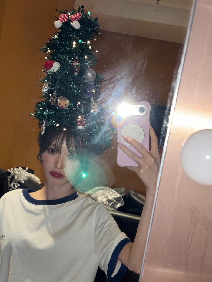 공개된 사진 속 웬디는 크리스마스 분위기가 물씬 풍기는 트리 모자를 머리에 얹은 채 다양한 포즈를 취하고 있어 팬들의 시선을 사로잡았다.