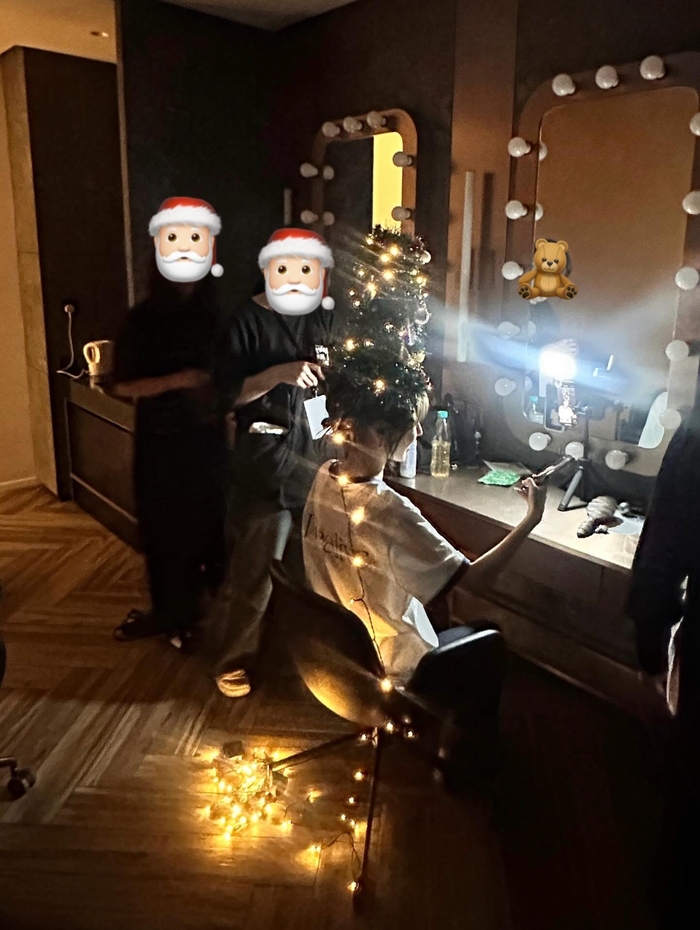 웬디는 높게 솟은 트리 모자의 균형을 잡기 위해 잔뜩 긴장한 표정을 짓는가 하면, 스태프들의 도움을 받으며 고군분투하는 모습을 가감 없이 드러냈다.