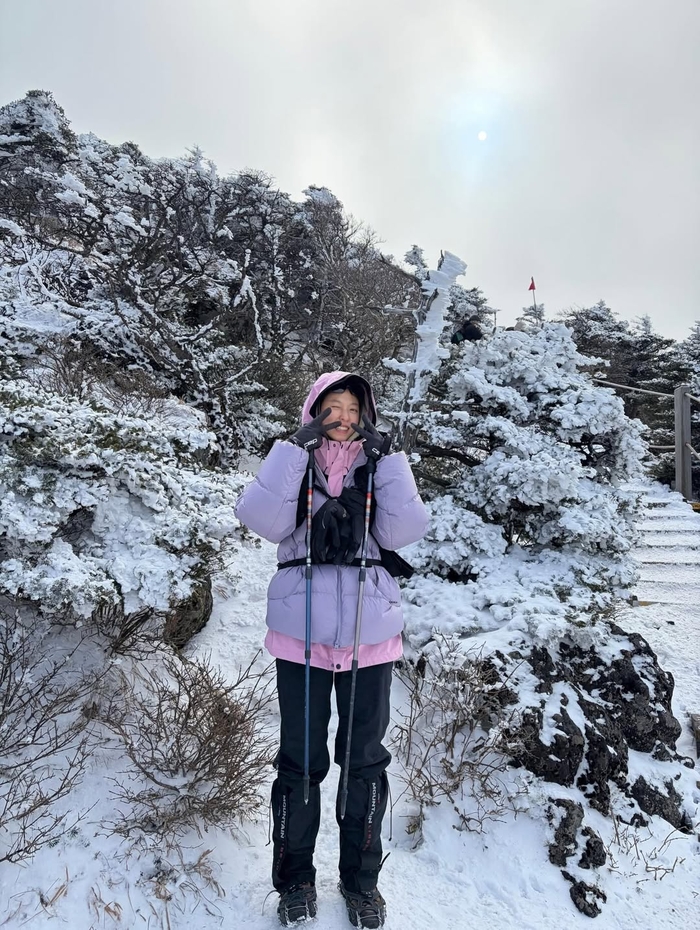 공개된 사진 속 설현은 설경이 펼쳐진 한라산 백록담 일대에서 등산복 차림으로 환한 미소를 짓고 있다. 정상 표지판 앞에서 포즈를 취하거나 눈 덮인 풍경을 배경으로 인증샷을 남겼다.