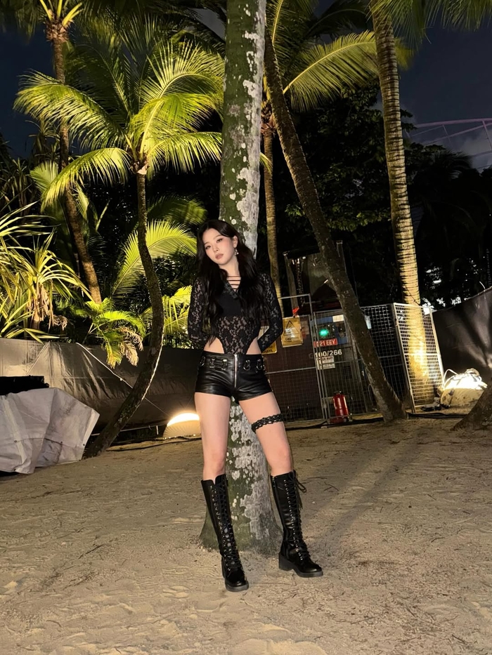슬기는 지난 1일 자신의 인스타그램에 여러 장의 사진과 함께 “2026”이라는 짧은 글을 남겼다. 공개된 사진 속 그는 야간 야외 공간을 배경으로 블랙 레이스 톱과 가죽 쇼츠, 롱부츠를 매치한 과감한 스타일링을 선보이며 강렬한 분위기를 연출했다.