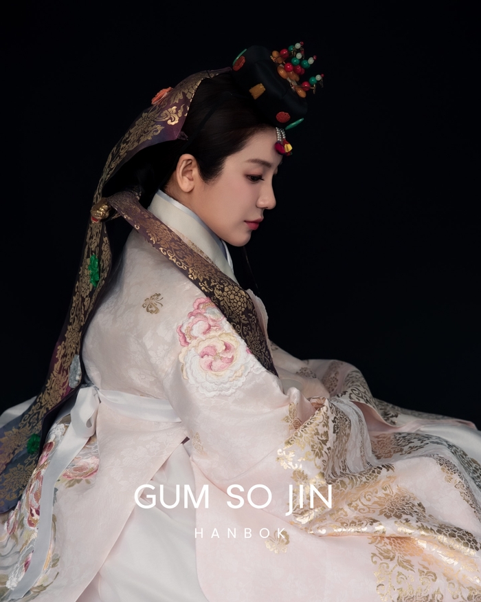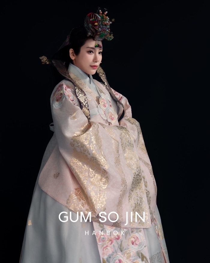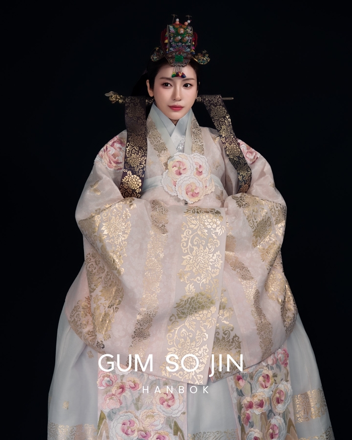 화사한 파스텔 톤의 당의와 정교한 자수가 놓인 한복을 완벽하게 소화한 그녀는 마치 사극 속 왕비와 같은 품격 있는 분위기를 자아내 시선을 압도했다.