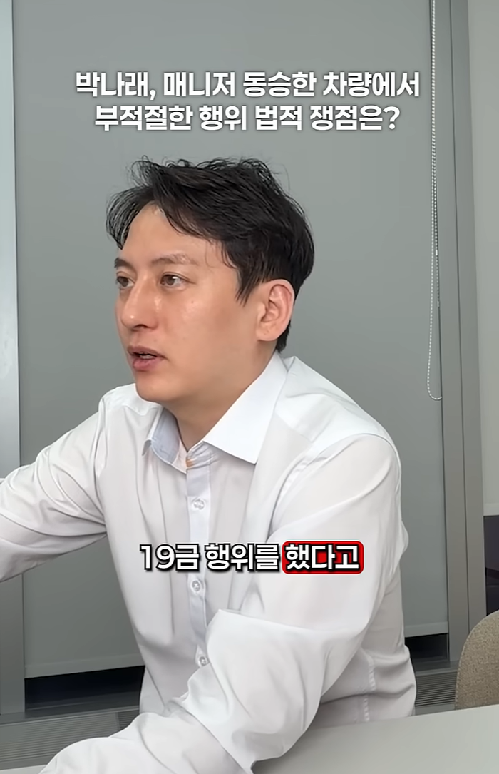 지난 5일 노바법률사무소 이돈호 대표변호사는 자신의 유튜브를 통해 “사실이라면 성희롱 또는 직장 내 괴롭힘이 문제 될 수 있다”고 진단했다. 그는 “매니저 직무의 특수성을 고려하면 이동 차량 역시 업무 공간으로 볼 수 있다”며 “업무 공간에서 원치 않는 성적 행위를 강제로 인지하게 했다면 직장 내 괴롭힘이 적용될 여지가 크다”고 설명했다.