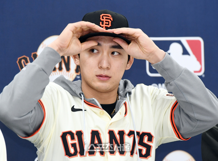 미국 메이저리그 샌프란시스코 자이언츠의 이정후가 7일 경기도 이천 LG챔피언스파크에서 진행된 미디어데이 행사에서 모자를 고쳐쓰고 있다. 2026. 1. 7.