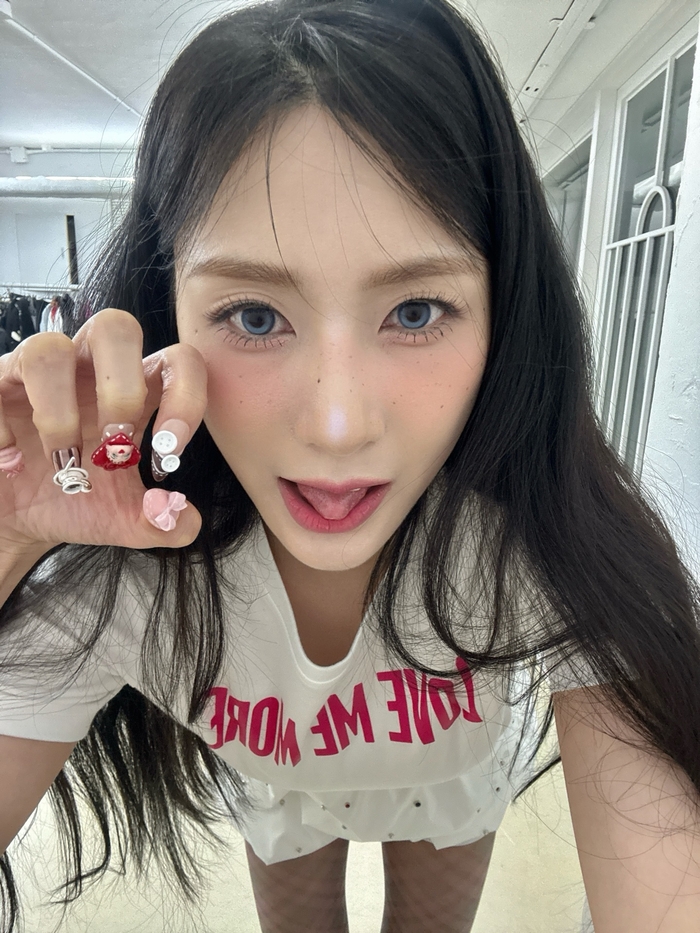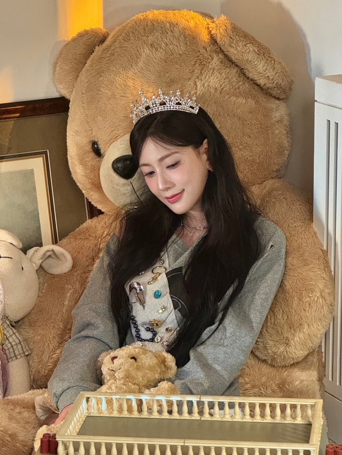특히 이번 활동을 위해 시도한 파격적인 스타일링이 눈길을 끌었다. 오하영은 신비로운 블루 컬러 렌즈와 주근깨 메이크업, 화려한 네일 아트를 완벽하게 소화하며 인형 같은 미모를 뽐냈다. 대형 곰 인형 옆에서 티아라를 쓰고 미소 짓는 모습은 마치 동화 속 주인공 같은 분위기를 풍겼다.