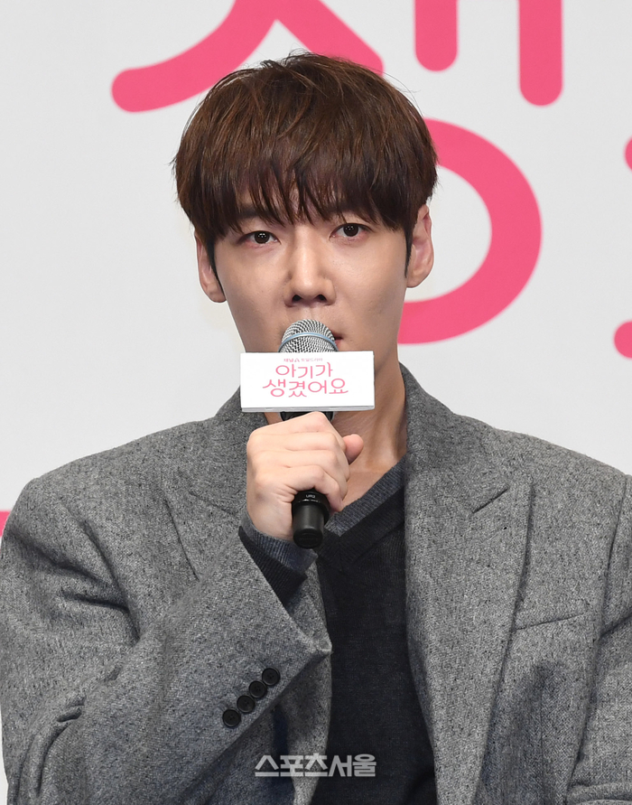 배우 최진혁이 13일 서울 구로구 더링크서울 트리뷰트 포트폴리오 호텔에서 진행된 채널A 새 토일드라마 ‘아기가 생겼어요’ 제작발표회에서 취재진의 질문에 답을 하고 있다.