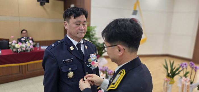 행사는 ▲이임 대장 감사패 전달 ▲취임대장 임명장 수여 ▲의용소방대기 전달 ▲이‧취임사 ▲축사 순으로 진행되었다. 이임하는 엄경석 대장은 의용소방대원으로 입대 후 지난 26년 동안 지역 안전을 위해 헌신한 공로로 감사패와 공로패를 받았고, 취임하는 서정일 대장에게는 임명장을 수여했다.
