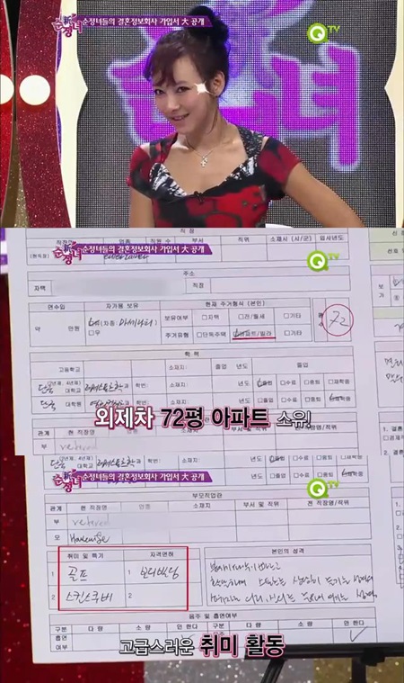 과거 방송된 QYV '신 순위정하는여자'에 출연한 이본은 함께 출연한 정가은, 솔비 등과 함께 결혼정보회사에 가입하기 위한 신청서를 공개했다.