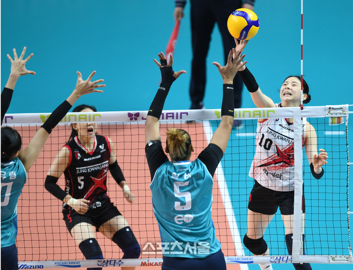 스포츠 | 배구 [포토] 박혜민 ‘뚫을 수 있어’ 입력2026-01-20 19:46:01 북마크 페이스북 트위터 SNS 더보기 가글자크기설정 인쇄 SNS 더보기 닫기 네이버밴드 네이버블로그 URL복사 글자크기 설정 메뉴 닫기 글자크기 설정 시 다른 기사의 본문도동일하게 적용됩니다. 가 가 가 가 가 정관장 박혜민이 20일 서울 장충체육관에서 열린 2025~2026 V-리그 GS칼텍스와 경기에서 연타를 날리고 있다.2026. 1. 20.장충 | 최승섭기자 thunder@sportsseoul.com 기사추천 0
