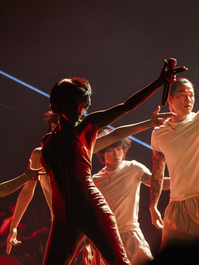 강렬한 보디수트를 입고 댄서들과 함께 무대를 누비는 모습에서는 범접할 수 없는 카리스마가 뿜어져 나왔고, 화이트 톤의 술 장식 의상을 입고 무대를 응시하는 뒷모습은 한 폭의 화보를 연상케 했다.